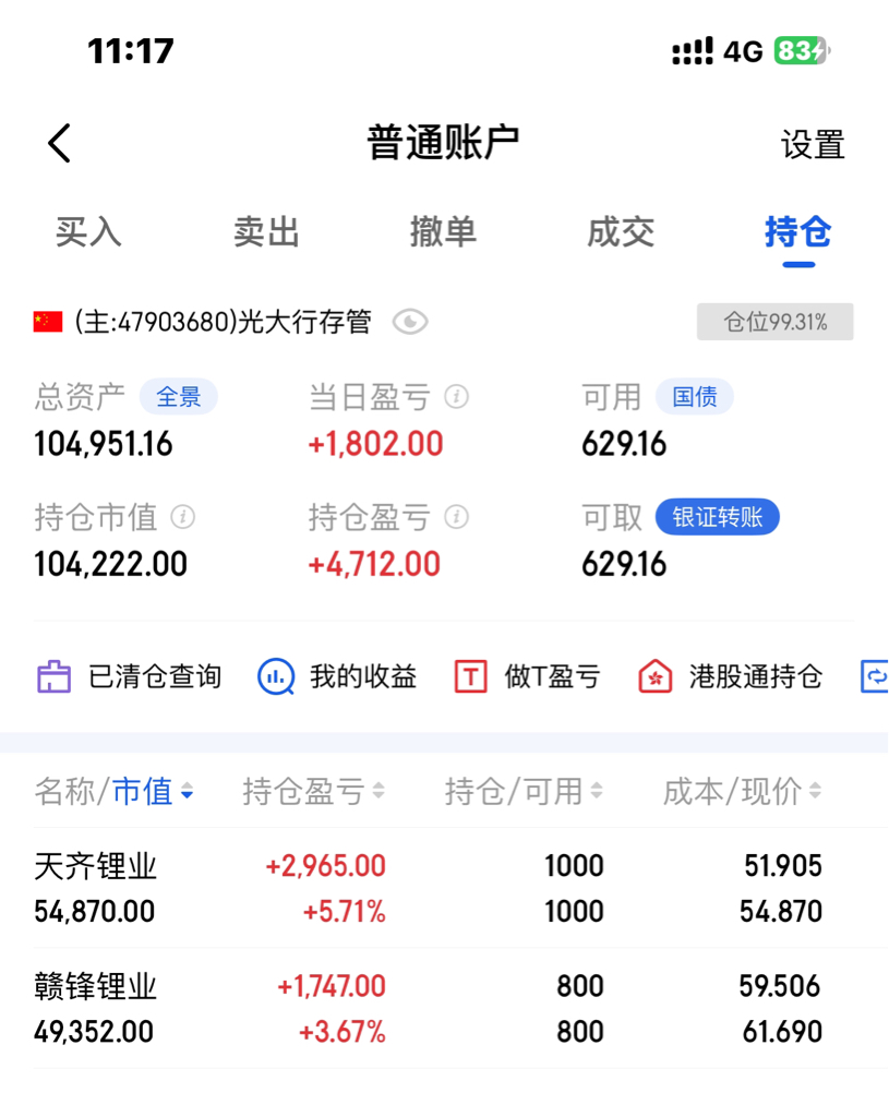 $天齐锂业(SZ002466)$ 昨天建仓,今天就盈利啦