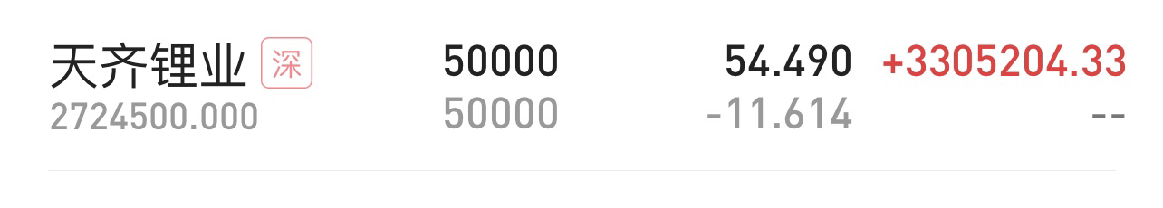 $天齐锂业(SZ002466)$ 不停T,成本已经-11.6了。