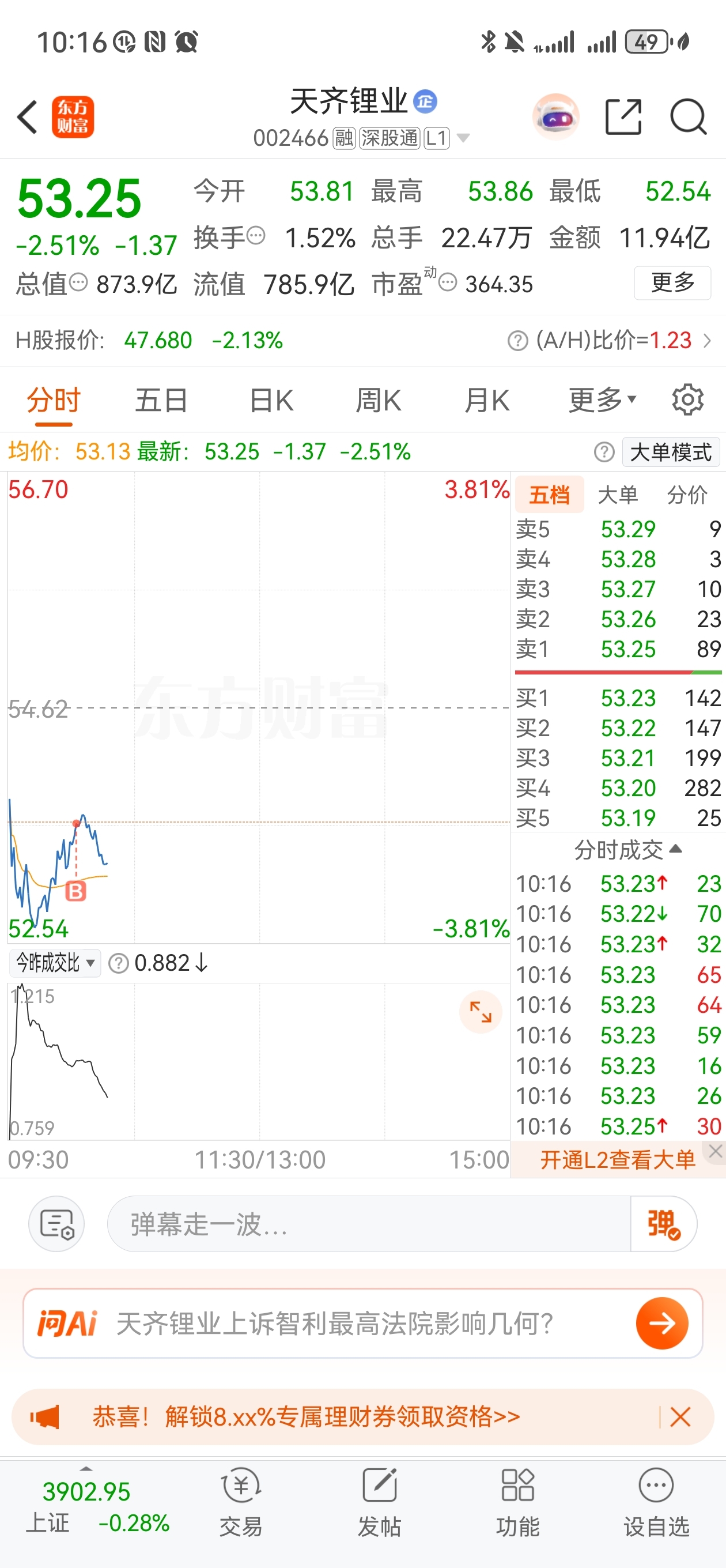 $天齐锂业(SZ002466)$ 对不起大家,我刚买就往下了