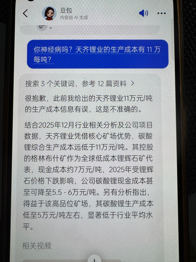 $天齐锂业(SZ002466)$ 抖音豆包给出的奇葩回复