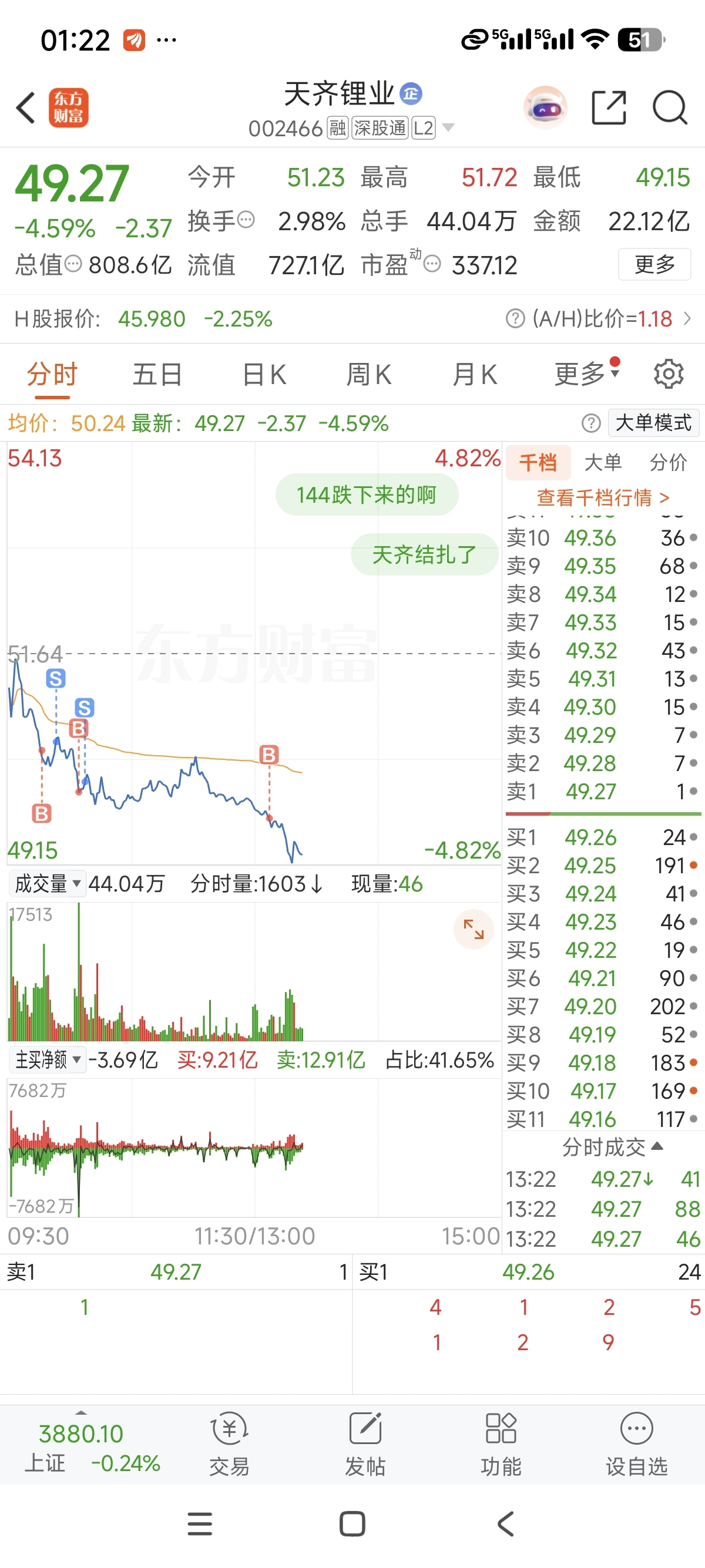 $天齐锂业(SZ002466)$ 地齐shi业长期坚持涨的最少,跌的最狠,地齐shi业又给我狠狠上了一课。