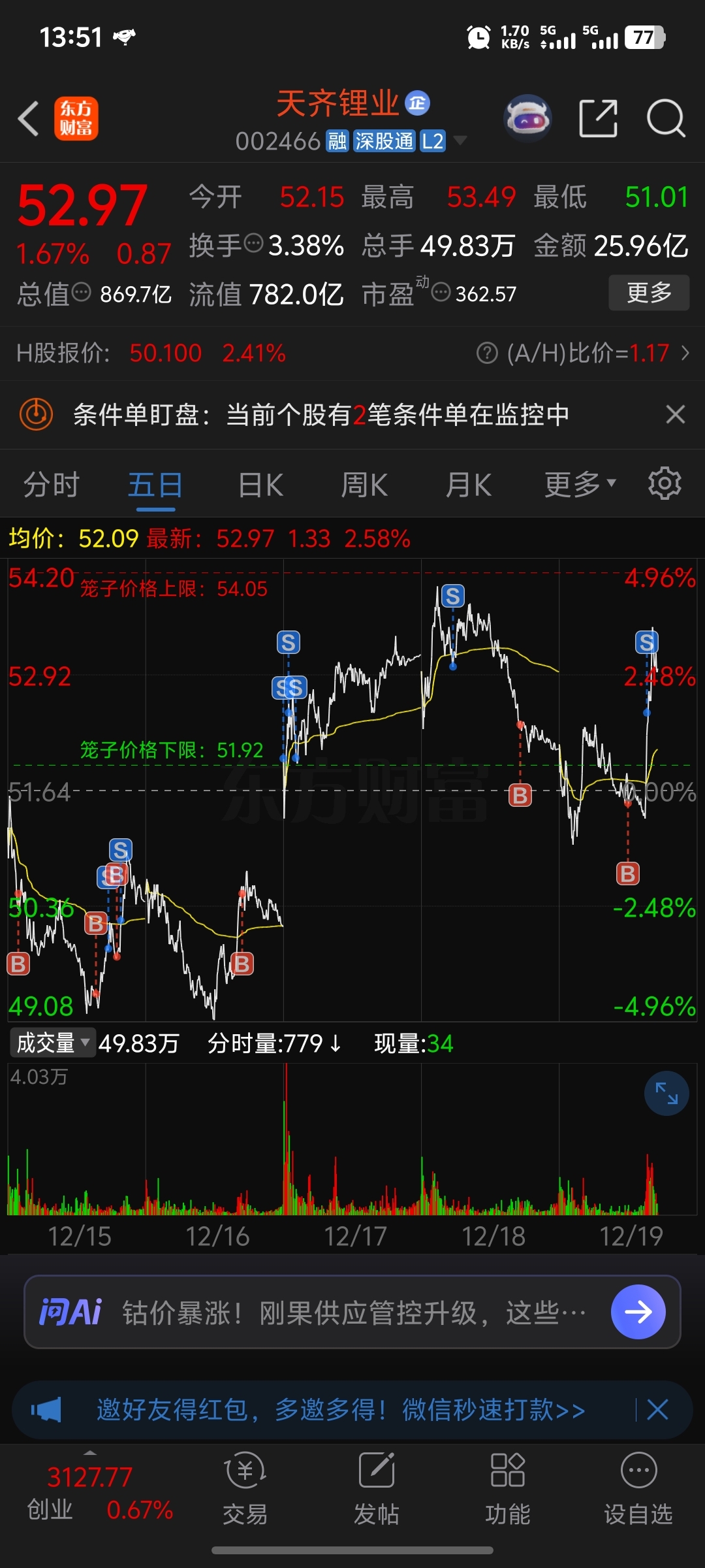 $天齐锂业(SZ002466)$ 什么时候能拉涨停,还套我10个点
