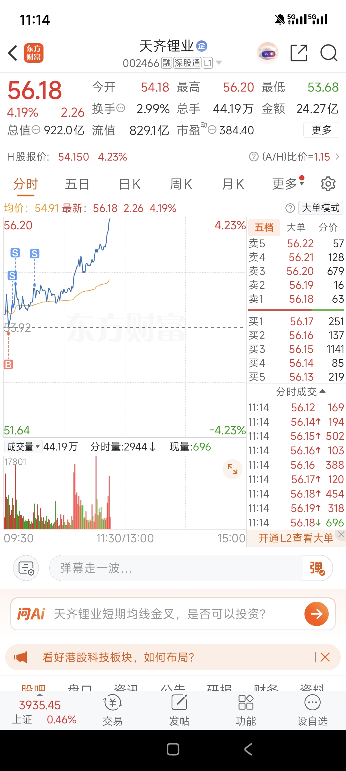 $天齐锂业(SZ002466)$ 太狡猾了,又上了主力的老当,早上故意装作要下跌。