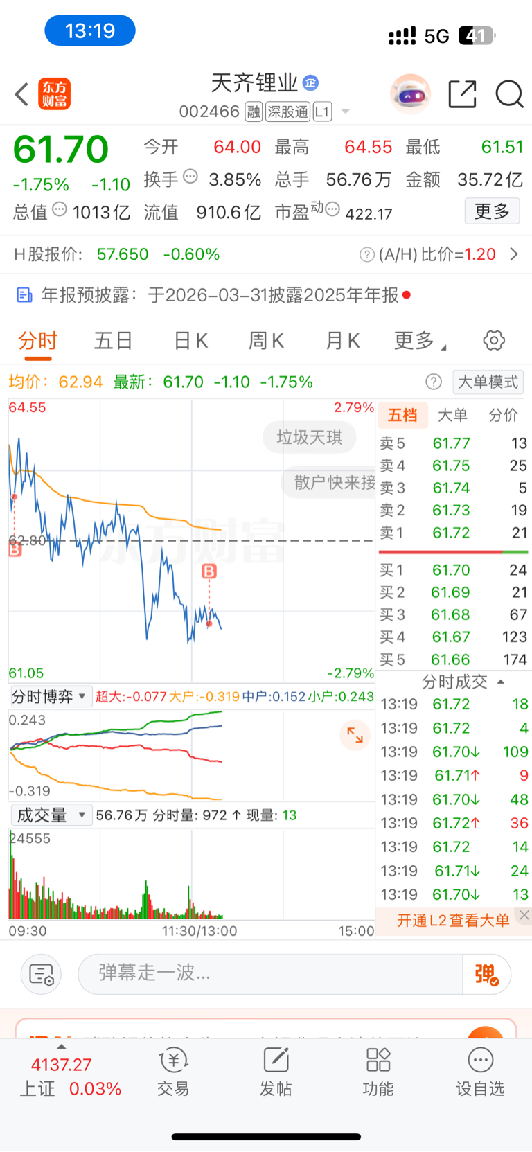 $天齐锂业(SZ002466)$ 加仓了,还没出去