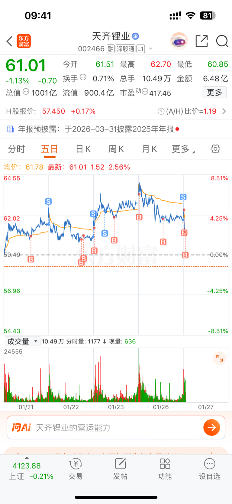 $天齐锂业(SZ002466)$ 连续几天都是高买低卖