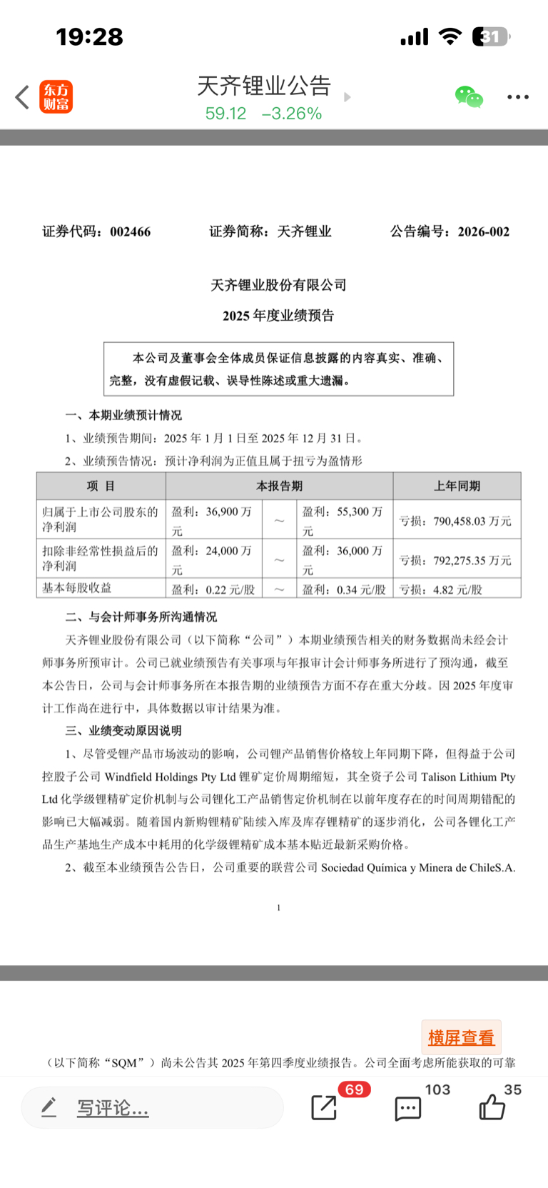 $天齐锂业(SZ002466)$ 扣除非经常性收益。赣锋锂业亏损最高6亿。天齐扣除非经常性收益盈利3.6亿。碳酸锂价格上涨弹性最好的就是天齐。因为天齐海外澳洲锂矿成本是最低的.大家可以再看看SQM25年每股收益.那么低的锂价竟然能赚那么多钱。试问国内哪个企业能做到.22年天齐每股收益15元。赣锋多少钱大家可以去翻看一下过往的年报。像当初锡业股吧群里一群S子一样的天天唱空最后全部被打脸。