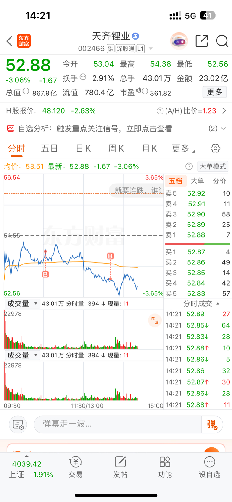 $天齐锂业(SZ002466)$ 均价53.8加仓了1000股,还在跌
