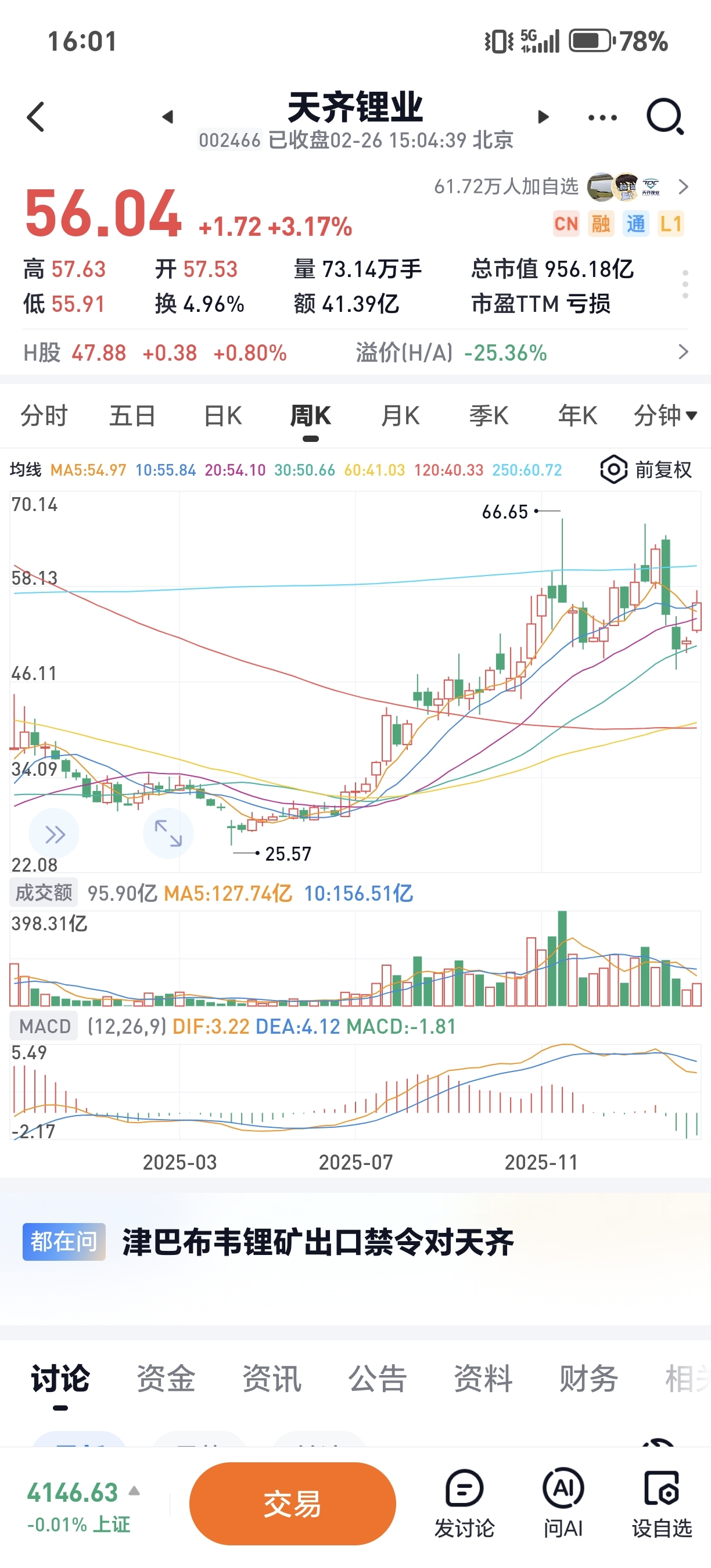 $天齐锂业(SZ002466)$ 周线一阳三线,跳口往上,强势形态中,希望明天上涨收盘!$中矿资源(SZ002738)$ $盛新锂能(SZ002240)$