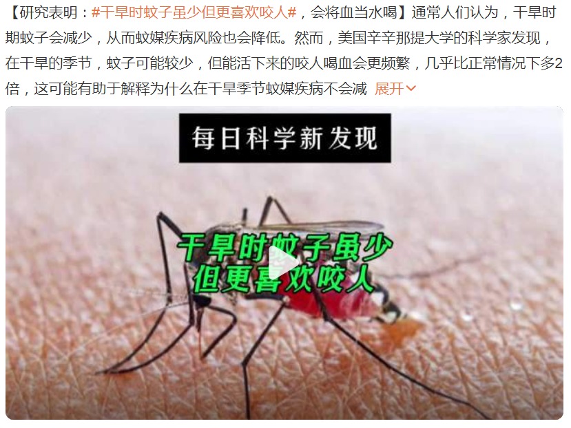 一张科普图给予我们的联想和启示:“在干旱的季节,蚊子可能较少,但能活下来的咬人喝