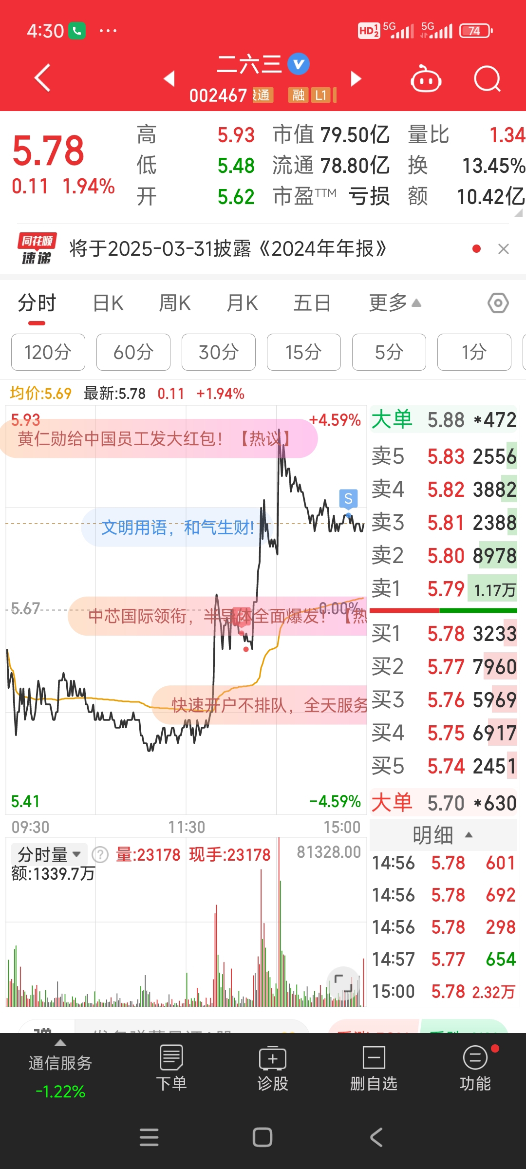 $二六三(SZ002467)$ 等5.35没等到,5.63进来了。筑底成功了,估计要涨了。