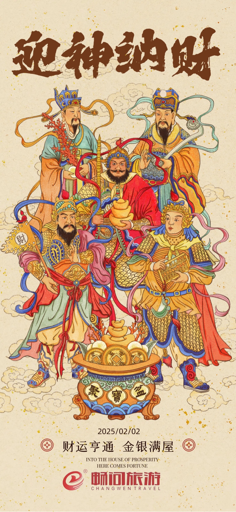 天门开地门开,五路财神进门来。一赐福二赐财,赐来金银抱满怀。三赐吉四赐祥,赐来如