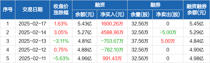 二六三:融资净买入1600.26万元,融资余额5.43亿元(02-17)