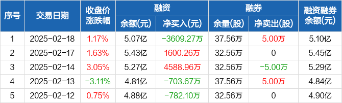 二六三:融资净偿还3609.27万元,融资余额5.07亿元(02-18)