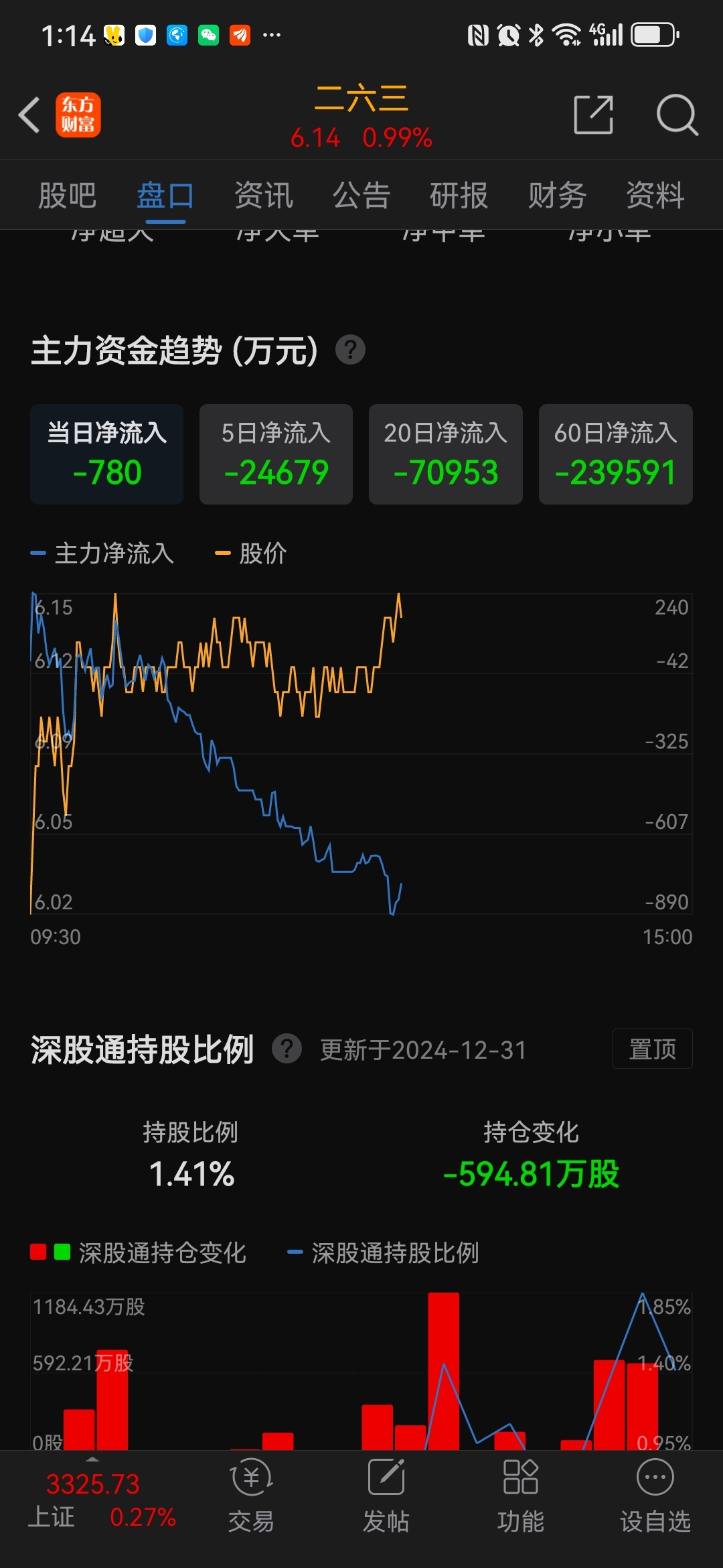 $二六三(SZ002467)$ 主力最近2个月流出23个亿。天天超卖,不知道是不是要退市