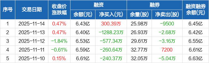 二六三:融资净买入300.39万元,融资余额6.43亿元(11-14)