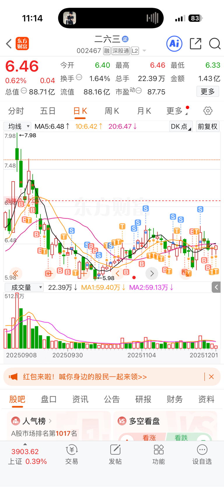 $二六三(SZ002467)$ 进来就被套,6万降到2.3万