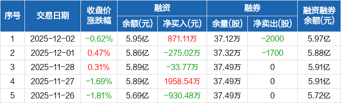 二六三:融资净买入871.11万元,融资余额5.95亿元(12-02)