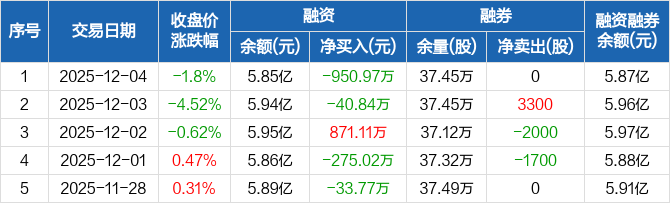 二六三:融资净偿还950.97万元,融资余额5.85亿元(12-04)