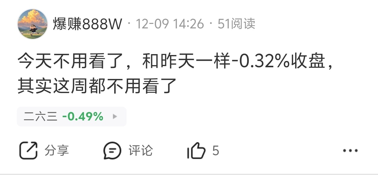 9号我就说了,这周都不用看了,明天也会是这样的走势。下周三之后你们可以看一下