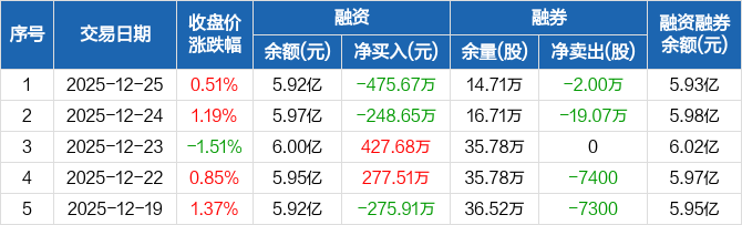二六三:融资净偿还475.67万元,融资余额5.92亿元(12-25)