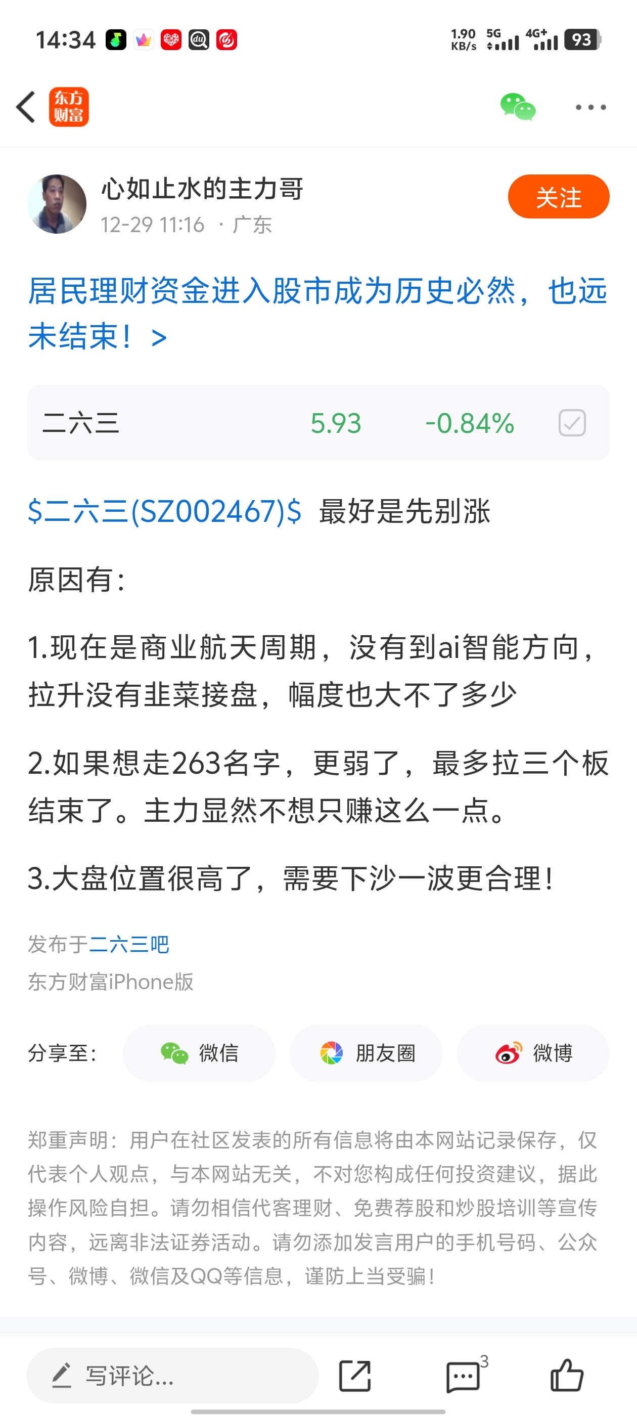 温馨提示: 1.根据《证券法》规定,禁止编造、传播虚假信息或者误导性信息,扰乱证券市场;2.用户在本社区发表的所有资料、言论等仅代表个人观点,与本网站立场无关,不对您构成任何投资建议。用户应基于自己的独立判断,自行决定证券投资并承担相应风险。《东方财富社区管理规定》