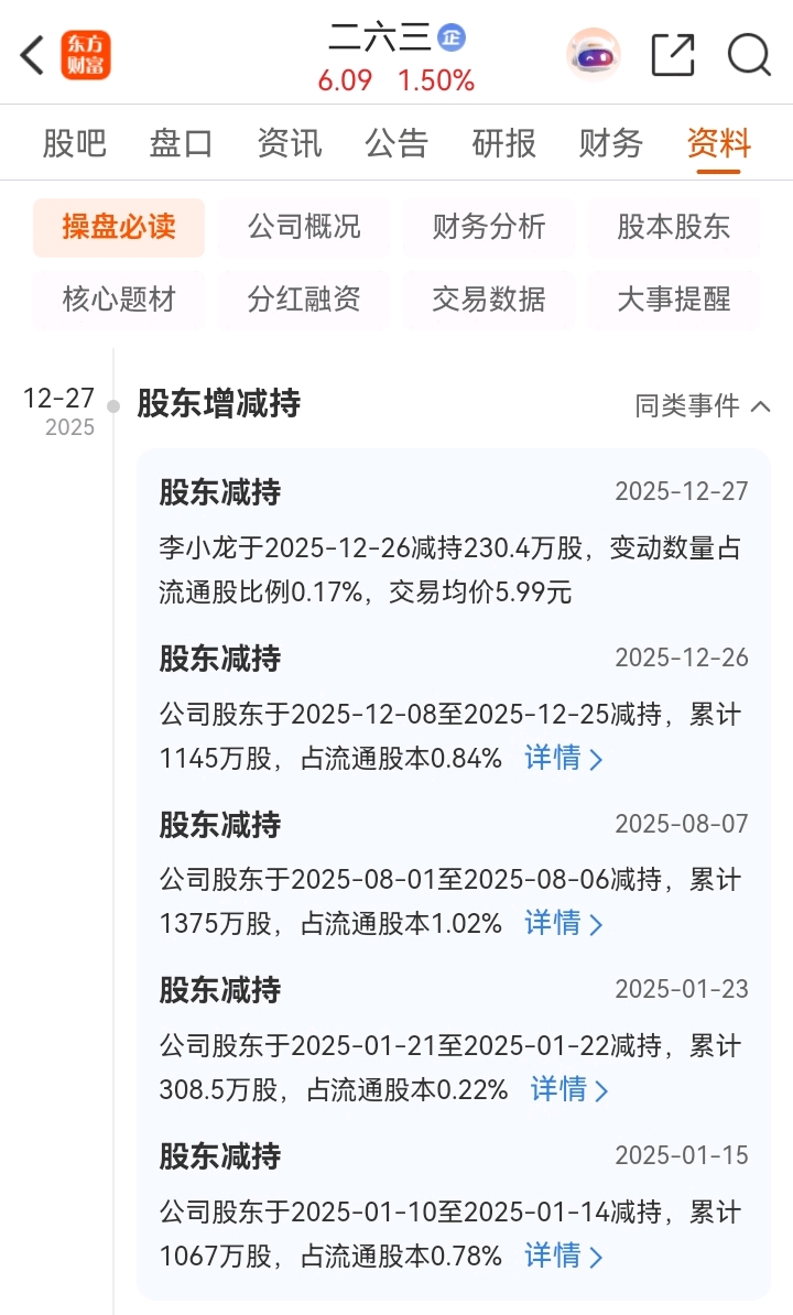 2024年底,李小龙持有2.17亿股。2025年底,李小龙持有1.757亿股。一年时间减持了4125.9万股,近20%的股份,减持最高价6.26元,最低价5.39元……这是个人急需资金,还是要跑路,