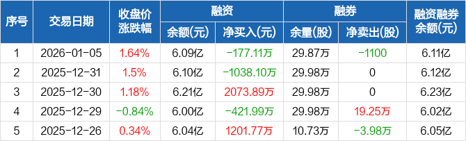 二六三:融资净偿还177.11万元,融资余额6.09亿元(01-05)