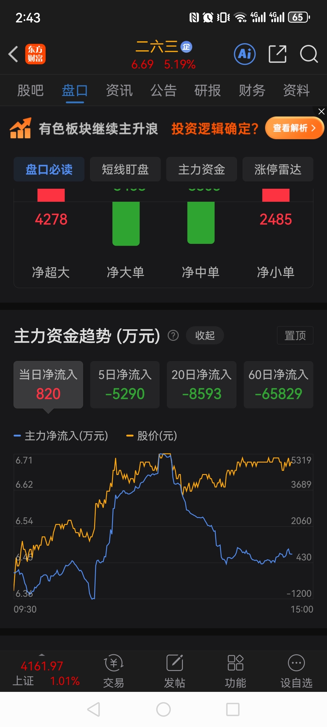 股价没变,流出了4千万,散户还是主力?