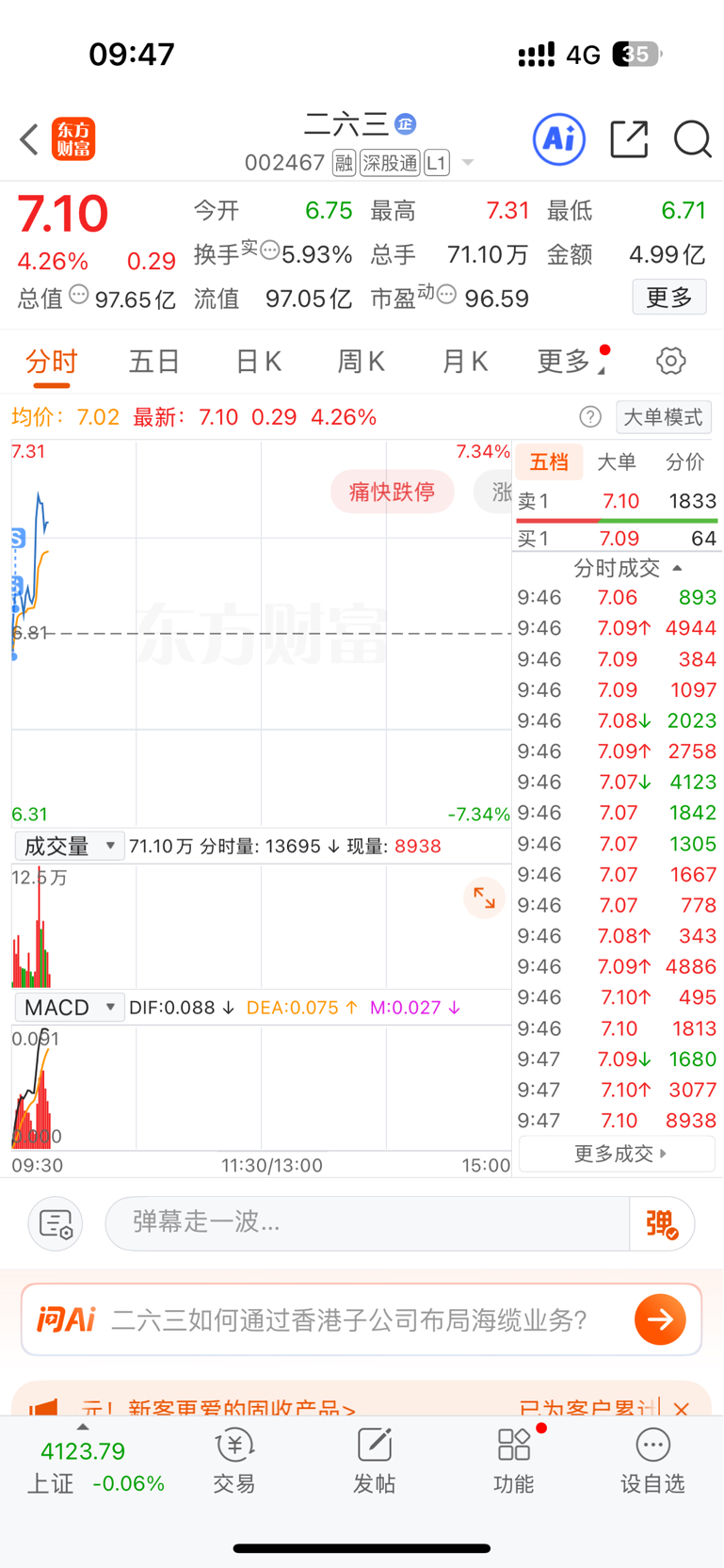 $二六三(SZ002467)$ 卖了就涨