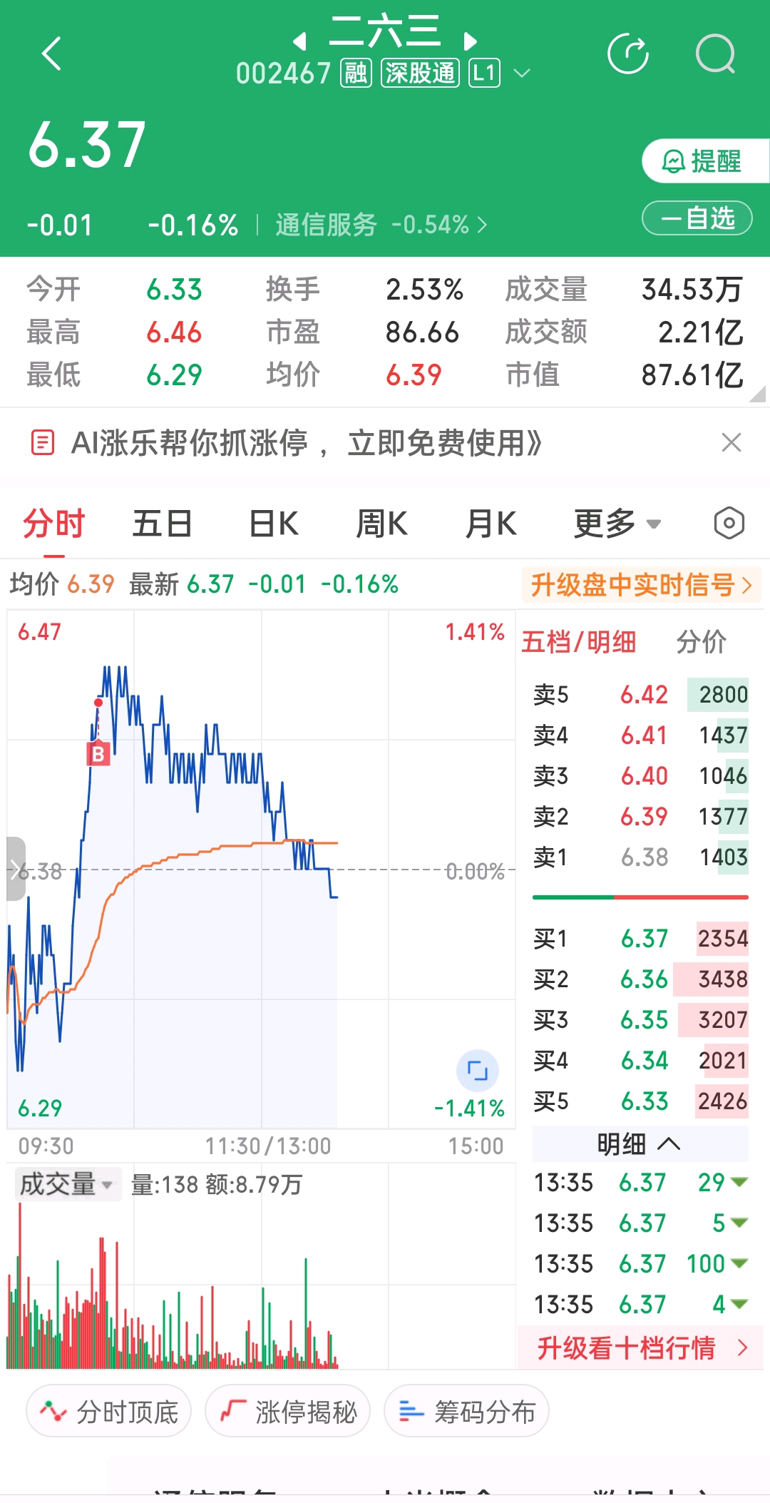 $二六三(SZ002467)$ 站山顶了