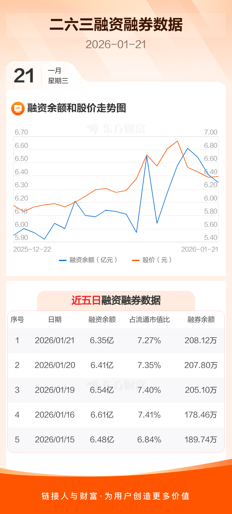 交易所最新数据显示,二六三于2026年1月21日获融资买入3401.85万元,融资偿还3995.20万元,当日融资净偿还593.35万元。目前,该股融资余额6.35亿,占流通市值比例为7.27%。