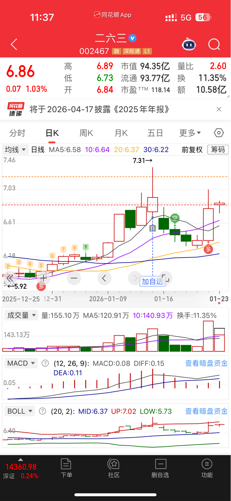 $二六三(SZ002467)$ 看好航天ai的补涨,下午6.85重仓加仓