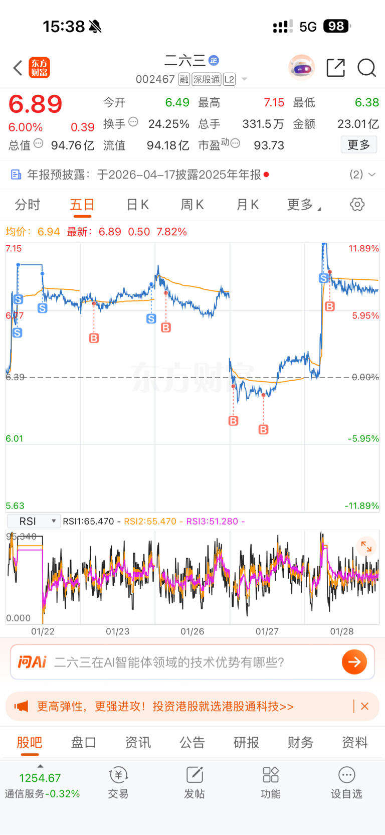 $二六三(SZ002467)$ 说点什么好呢,不贪就是赚,涨停就清仓,下跌就少量买入