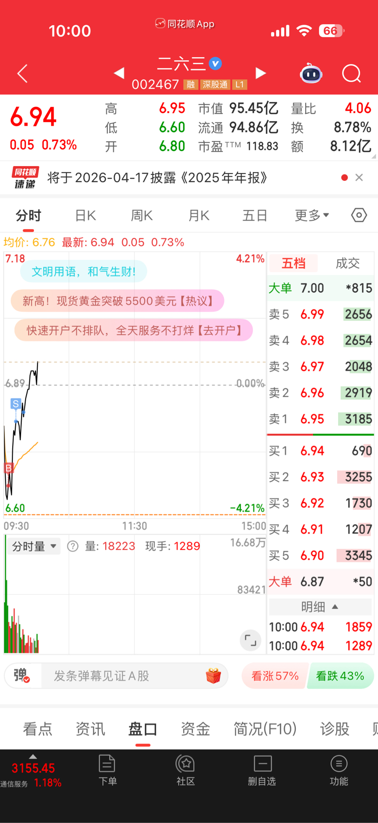 $二六三(SZ002467)$ 6.63又来了