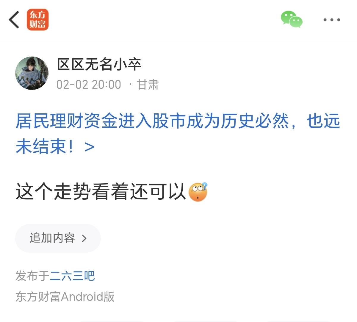 温馨提示: 1.根据《证券法》规定,禁止编造、传播虚假信息或者误导性信息,扰乱证券市场;2.用户在本社区发表的所有资料、言论等仅代表个人观点,与本网站立场无关,不对您构成任何投资建议。用户应基于自己的独立判断,自行决定证券投资并承担相应风险。《东方财富社区管理规定》