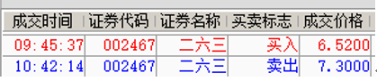 昨天6,65建仓,今天回踩低点加仓,没想到一次就过前高了,不管怎样,捞了一个板,很知足。(提前设置了前高把昨天的走掉,成交了。)