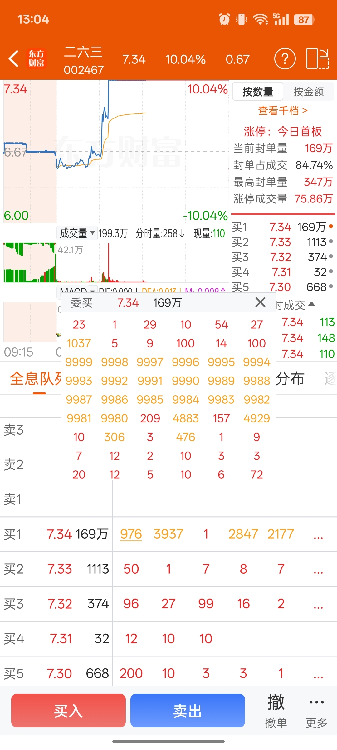 $二六三(SZ002467)$ 主力,你挂着玩呢?看来主力心情不错