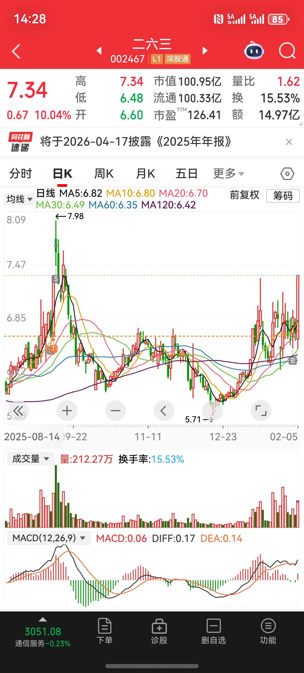 $二六三(SZ002467)$ 263上次吃了21个点走的,这次希望能走出3连板