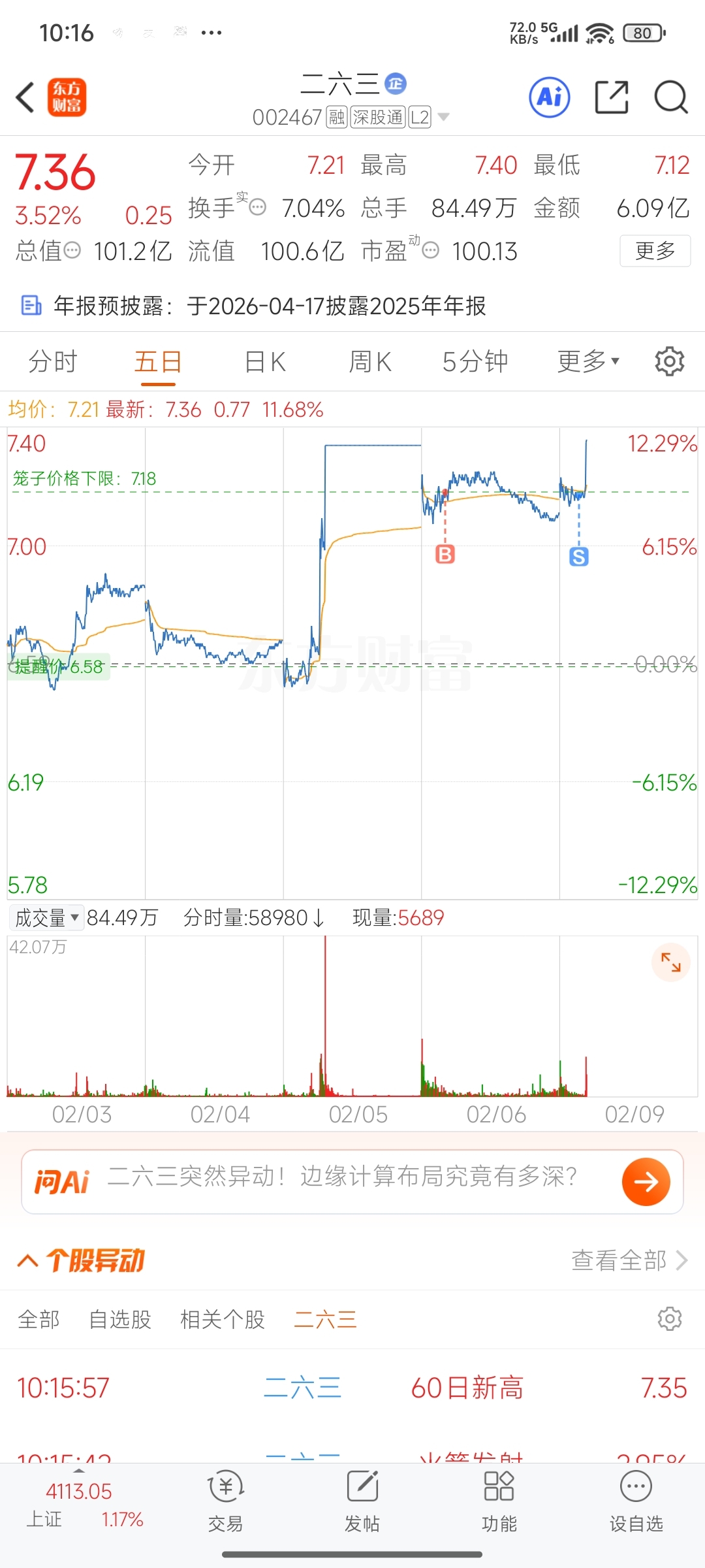$二六三(SZ002467)$ 我卖了就放心大胆的涨吧