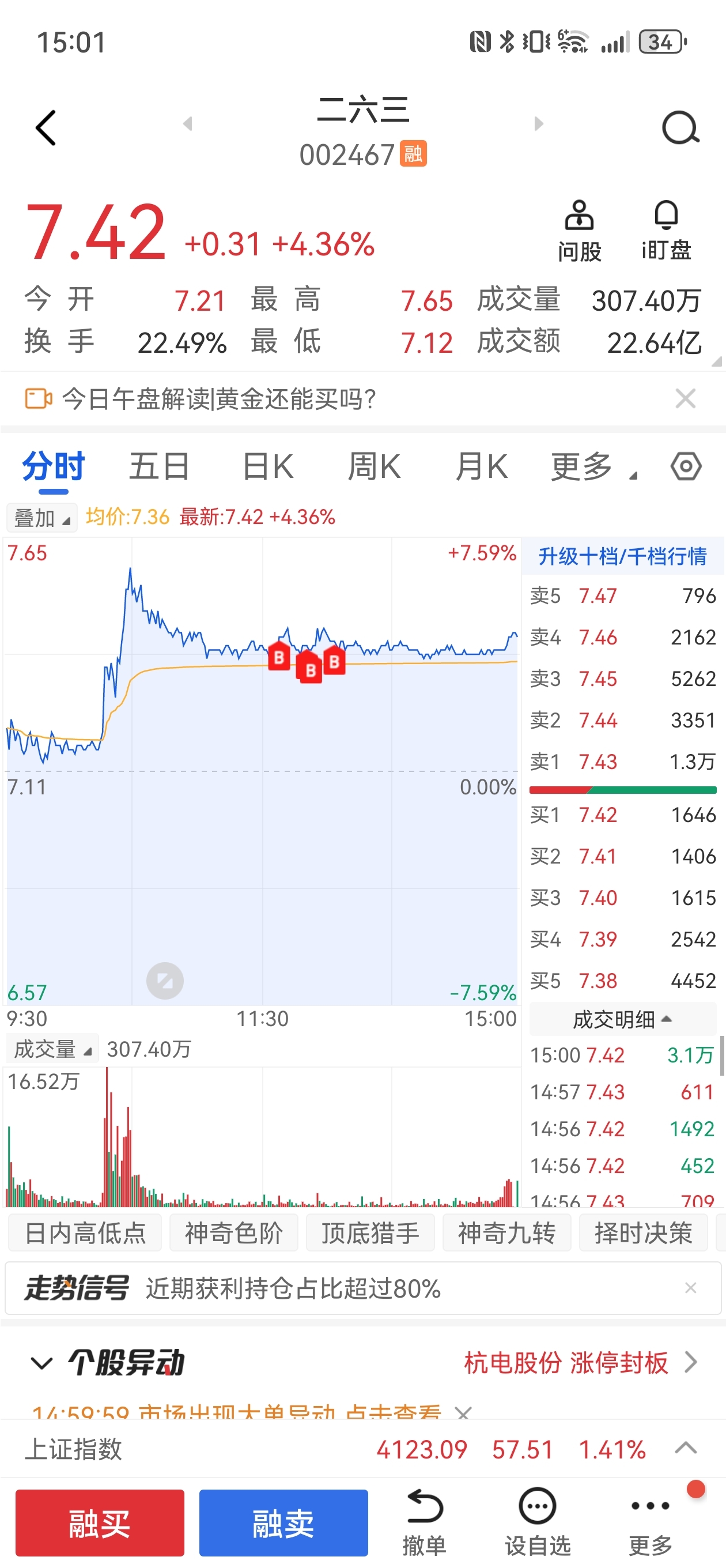 $二六三(SZ002467)$ 冲冲冲