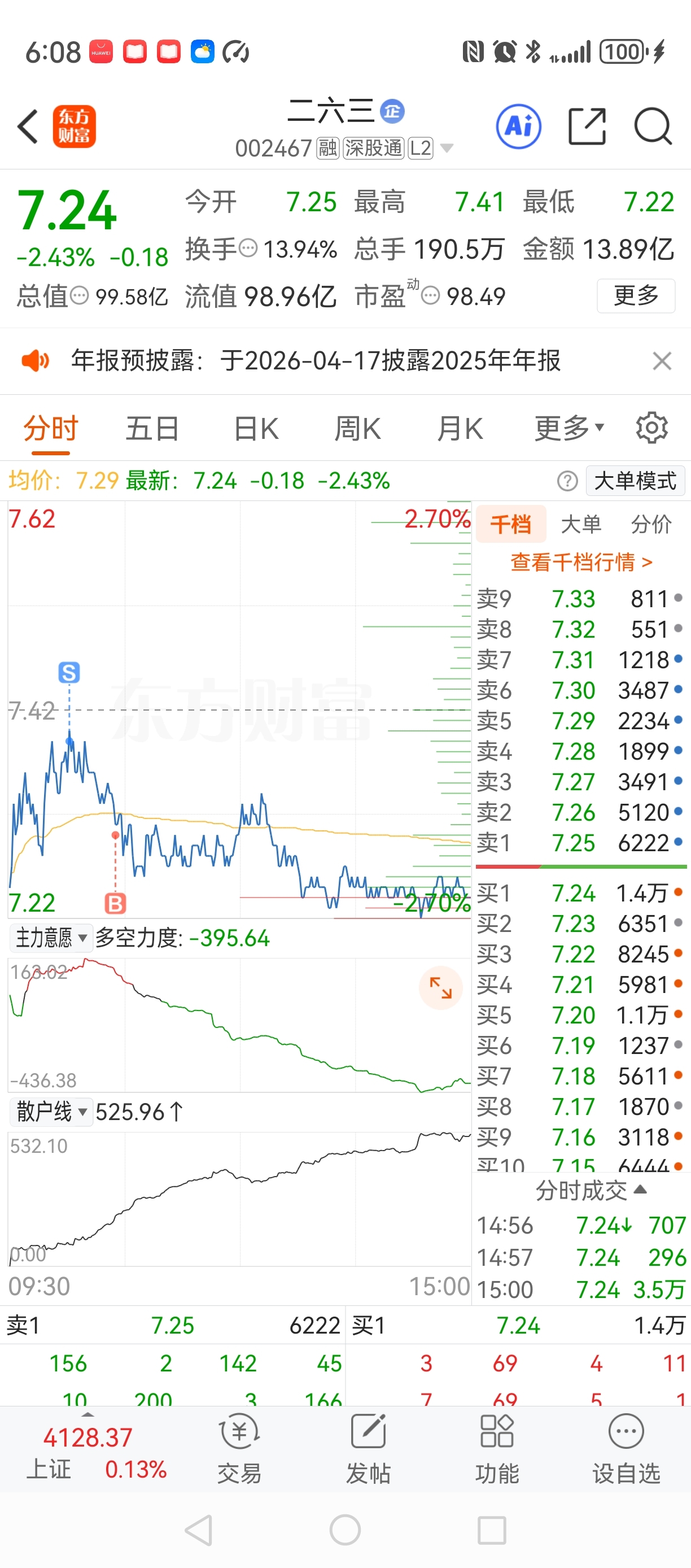 $二六三(SZ002467)$ 在最高点清仓了,没忍住又买了半仓