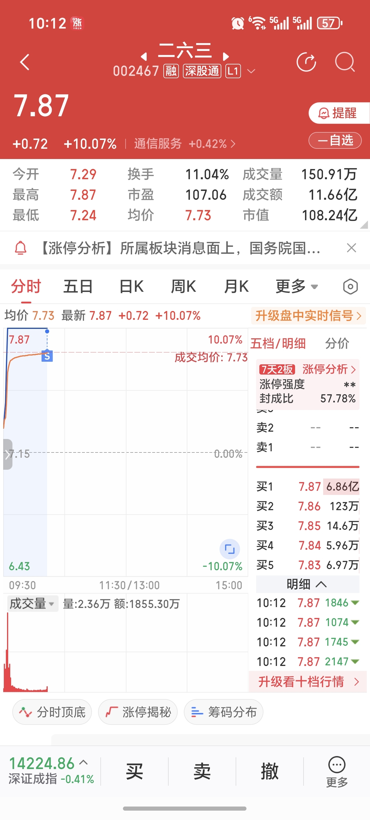$二六三(SZ002467)$ 情况不对,马上撤退。