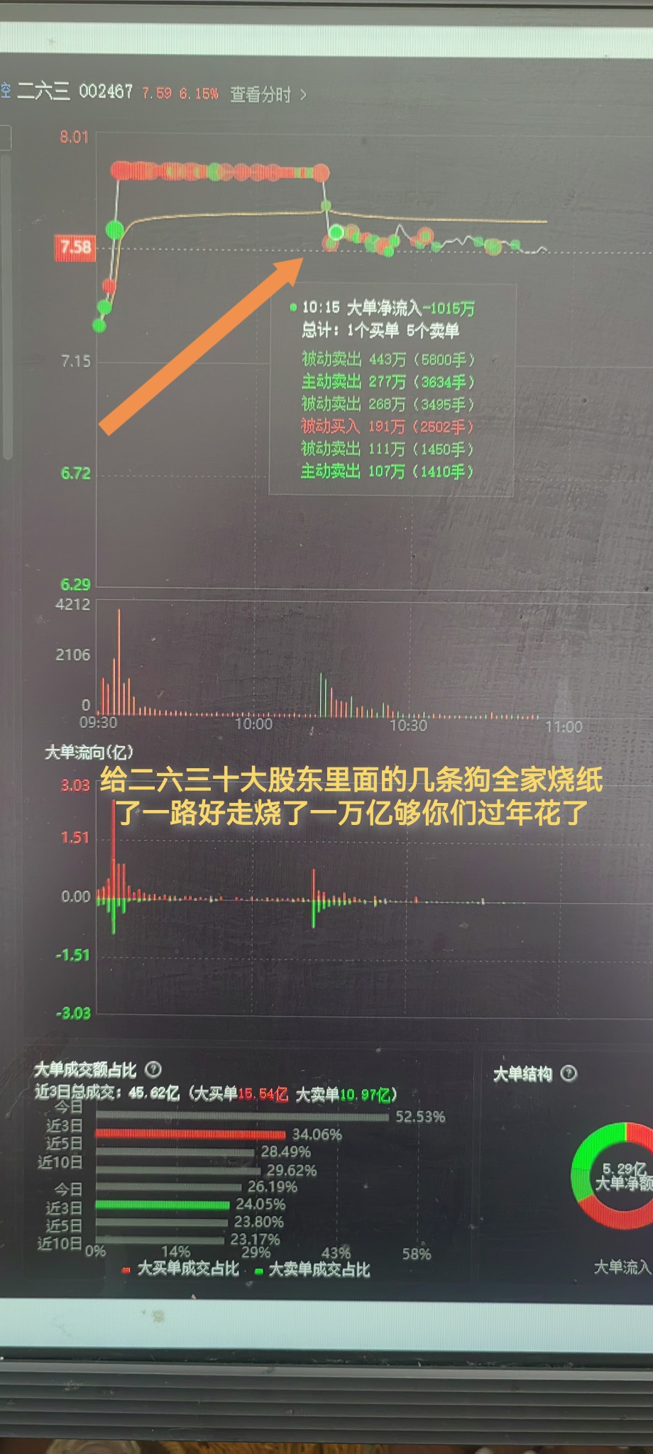 $二六三(SZ002467)$ 送给今天用融券板上砸的苟