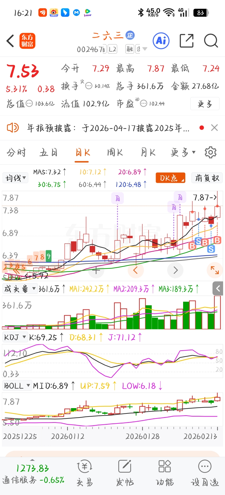 $二六三(SZ002467)$ 我踏马吐了