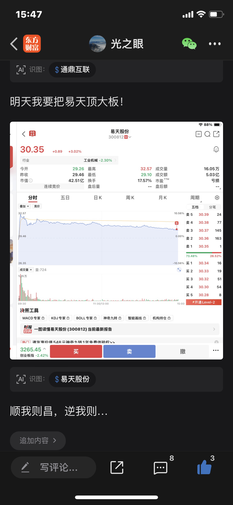 温馨提示: 1.根据《证券法》规定,禁止编造、传播虚假信息或者误导性信息,扰乱证券市场;2.用户在本社区发表的所有资料、言论等仅代表个人观点,与本网站立场无关,不对您构成任何投资建议。用户应基于自己的独立判断,自行决定证券投资并承担相应风险。《东方财富社区管理规定》