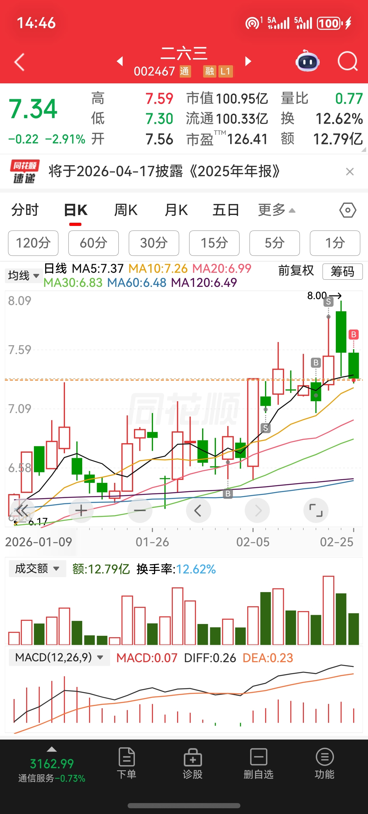 $二六三(SZ002467)$ 买了点,明天来根大阳线