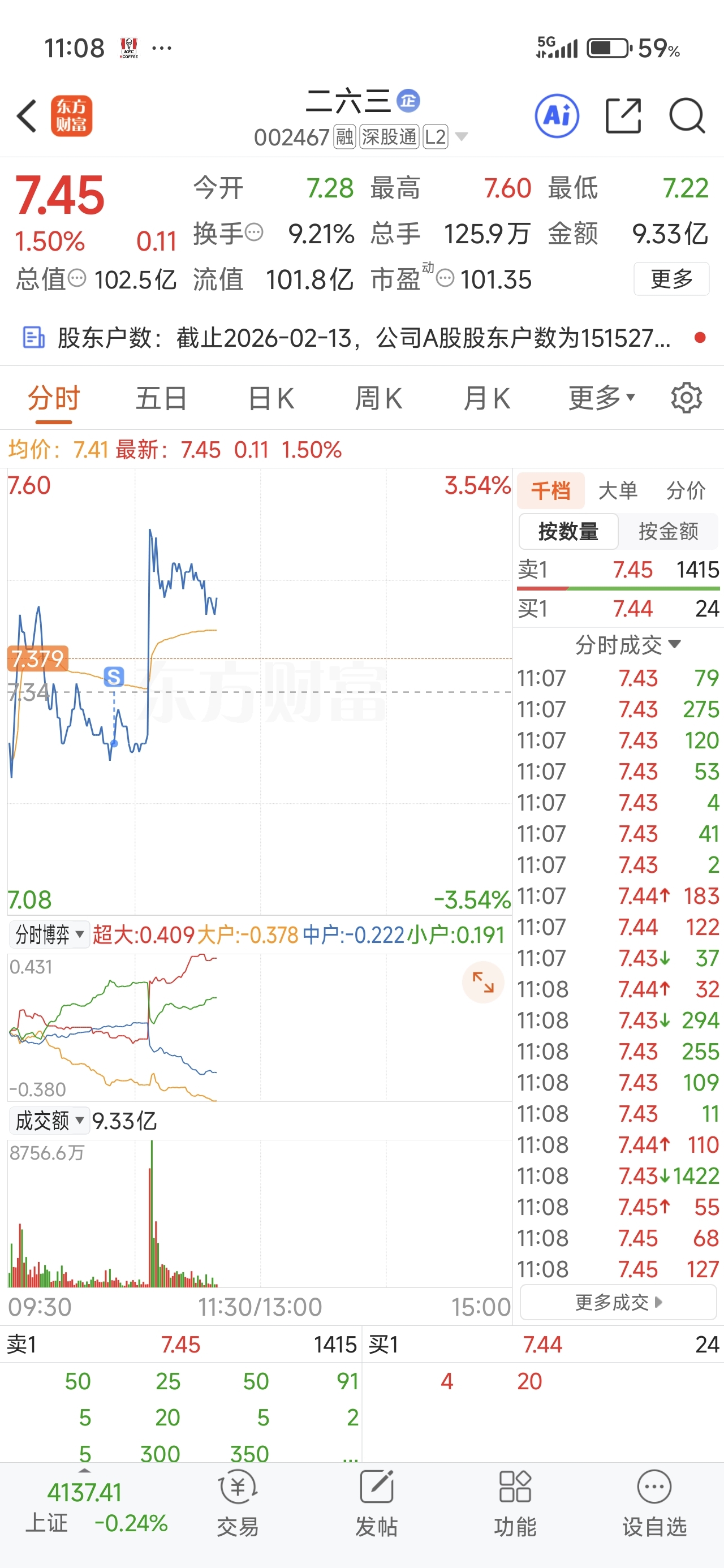 $二六三(SZ002467)$ 我寻思出半仓去别的地方套个利,你