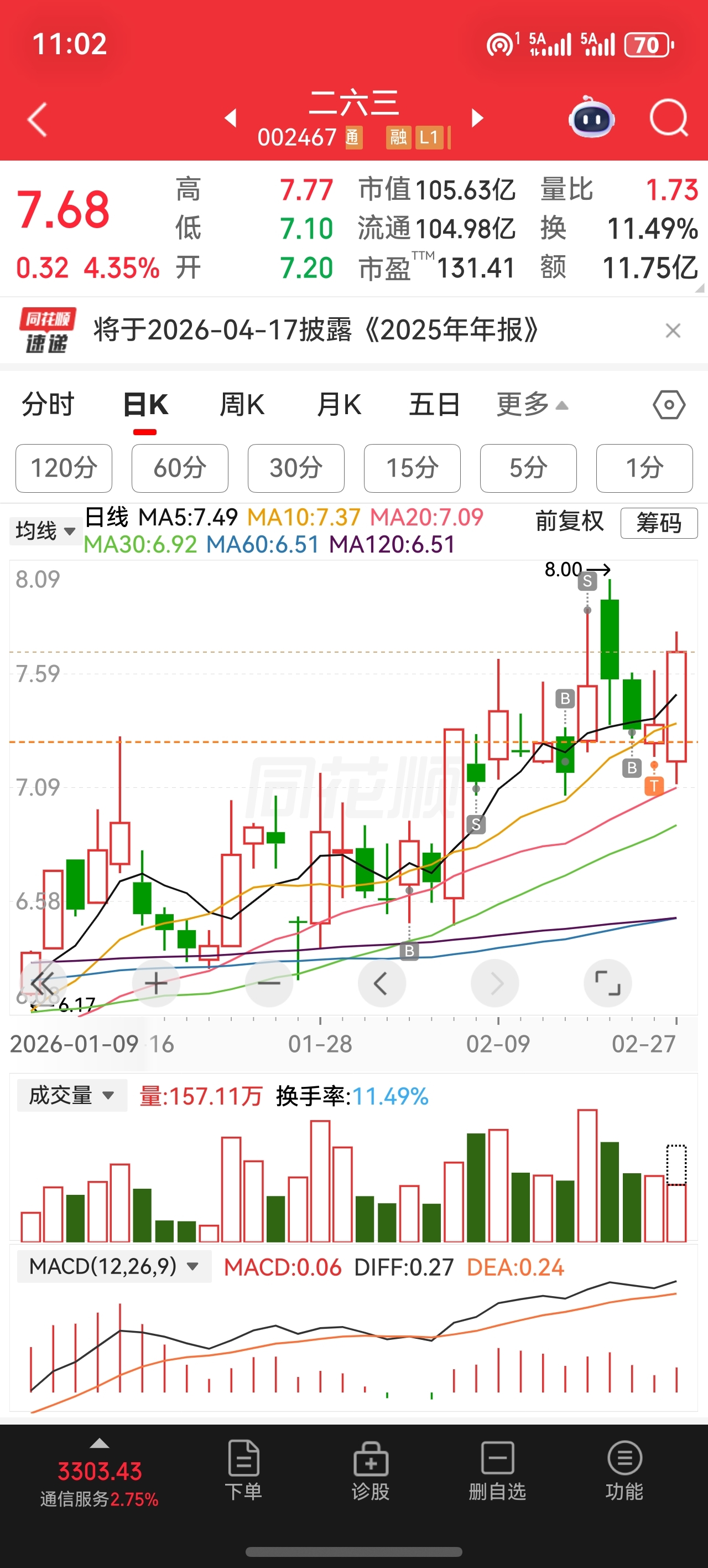 $二六三(SZ002467)$ 这次如果板,应该不会炸了,263从不负我