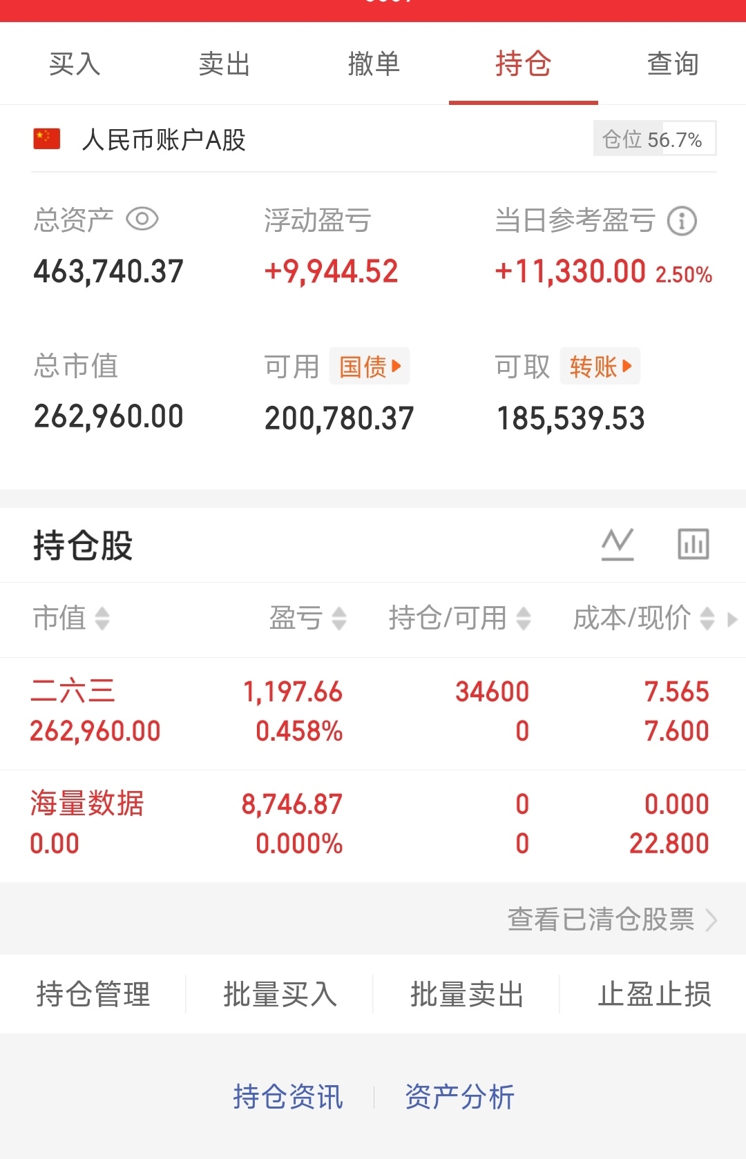 目前持仓: 二六三