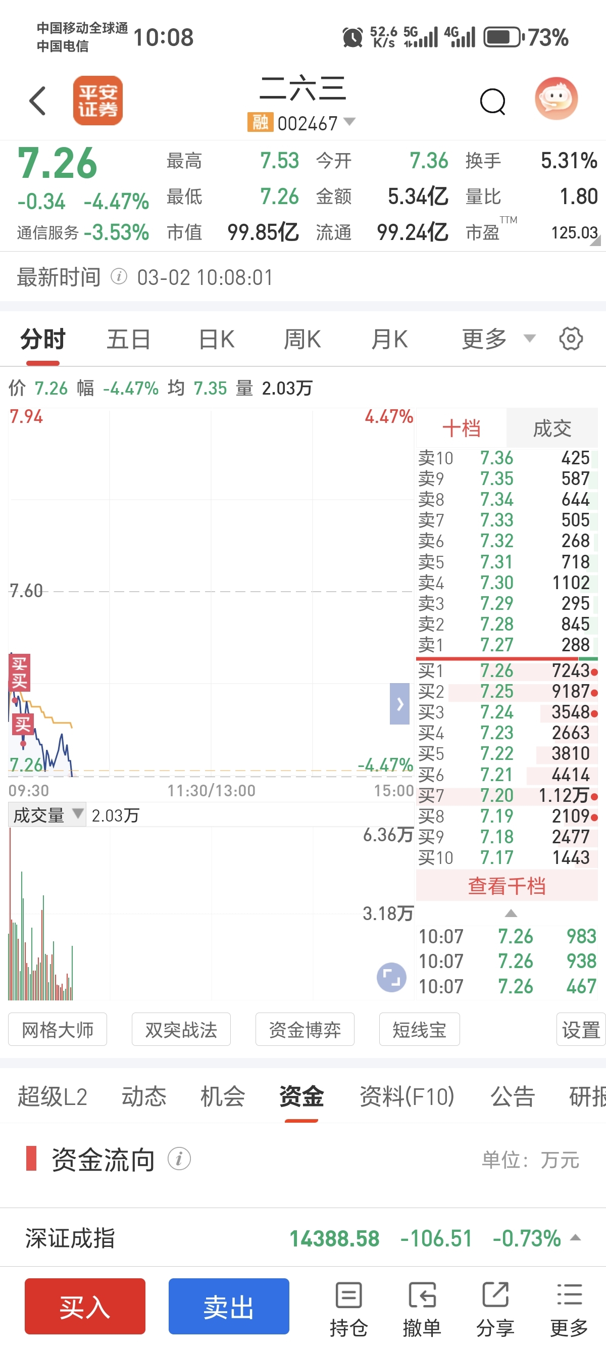 $二六三(SZ002467)$ 这个仓加的有点着急了!希望下午主力能拉一下!